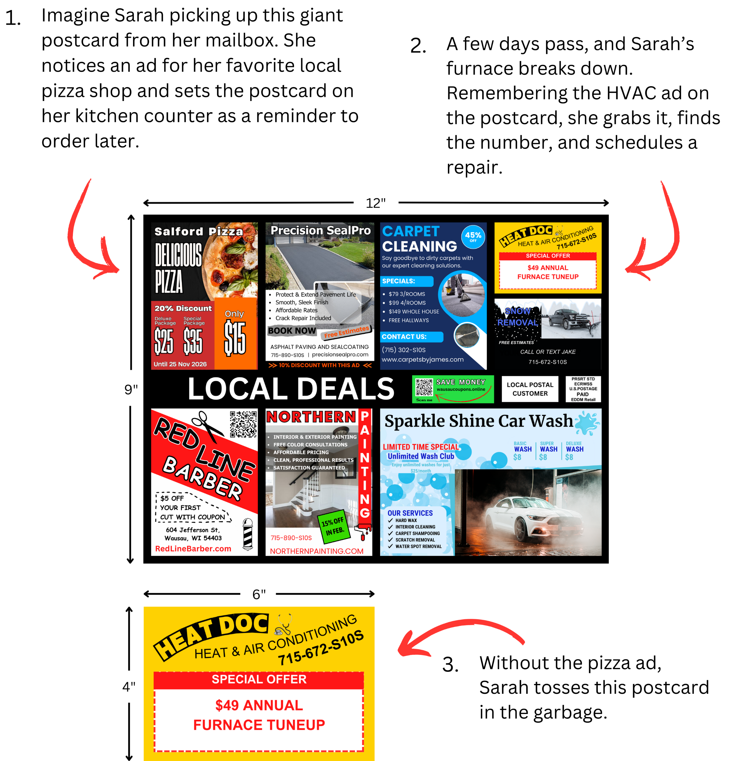 That’s the magic of shared advertising. One ad gets the postcard in the door; the others make it invaluable. This collaborative approach ensures your business stays in front of customers exactly when they need you.